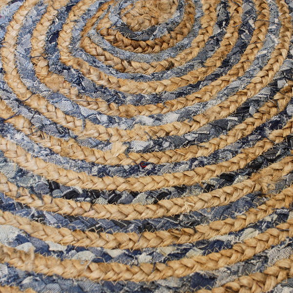 Egyenesen Indiából hozzuk Önnek ezeket a kézműves Nagykereskedelmi Kerek Szőnyegeket Jutából és Újrahasznosított Farmerből-150cm.