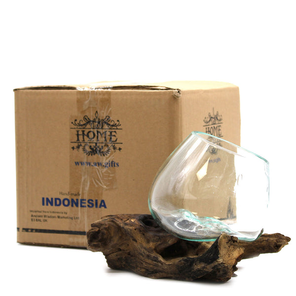 A Nagykereskedelmi Olvasztott Üveg Fa Alátéten-Közepes Tál Baliról került hozzánk. Kézműves munka, újrahasznosított üvegből fújva, a Gamal fa gyökerével kombinálva. A forró üveget a gyökérre helyezik és hagyják ott megdermedni, hogy így bebiztosítsák a tökéletes stabilitást. Ezen termékek mindegyike egyedi.