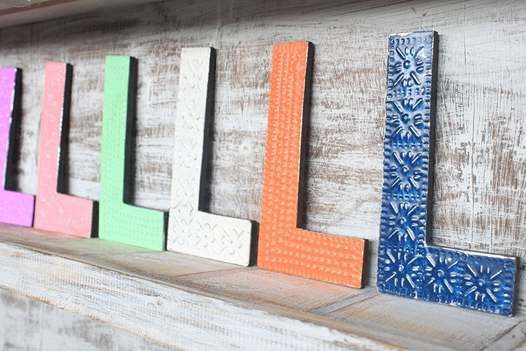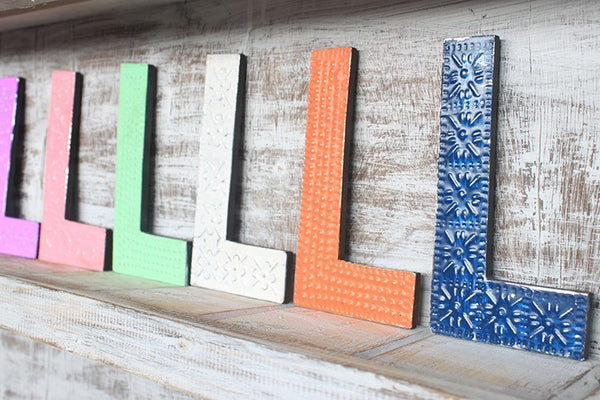 A fa és alumínium kombinációjával készült betűk dekorációs felületűek és kerekített széleik vannak. Betűzze ki nevét, kedvenc focicsapatát, bármilyen szavat vagy akármi mást ezekkle a rusztikális betűkkel.