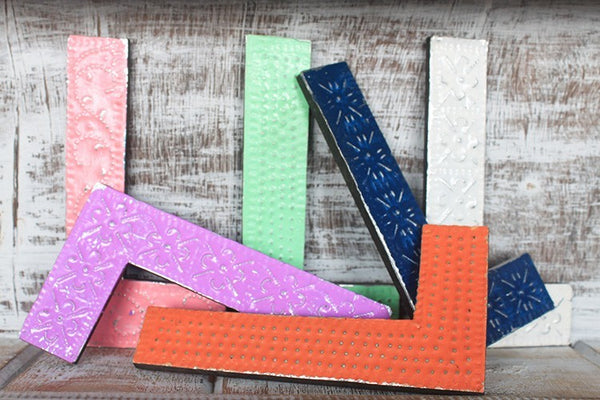 A betűk kézműves termékek, könnyűek és 6 darabos csomagolásban kaphatók. Hátsó részükön kis kampó található. ennek segítségével könnyen felakaszthatók.