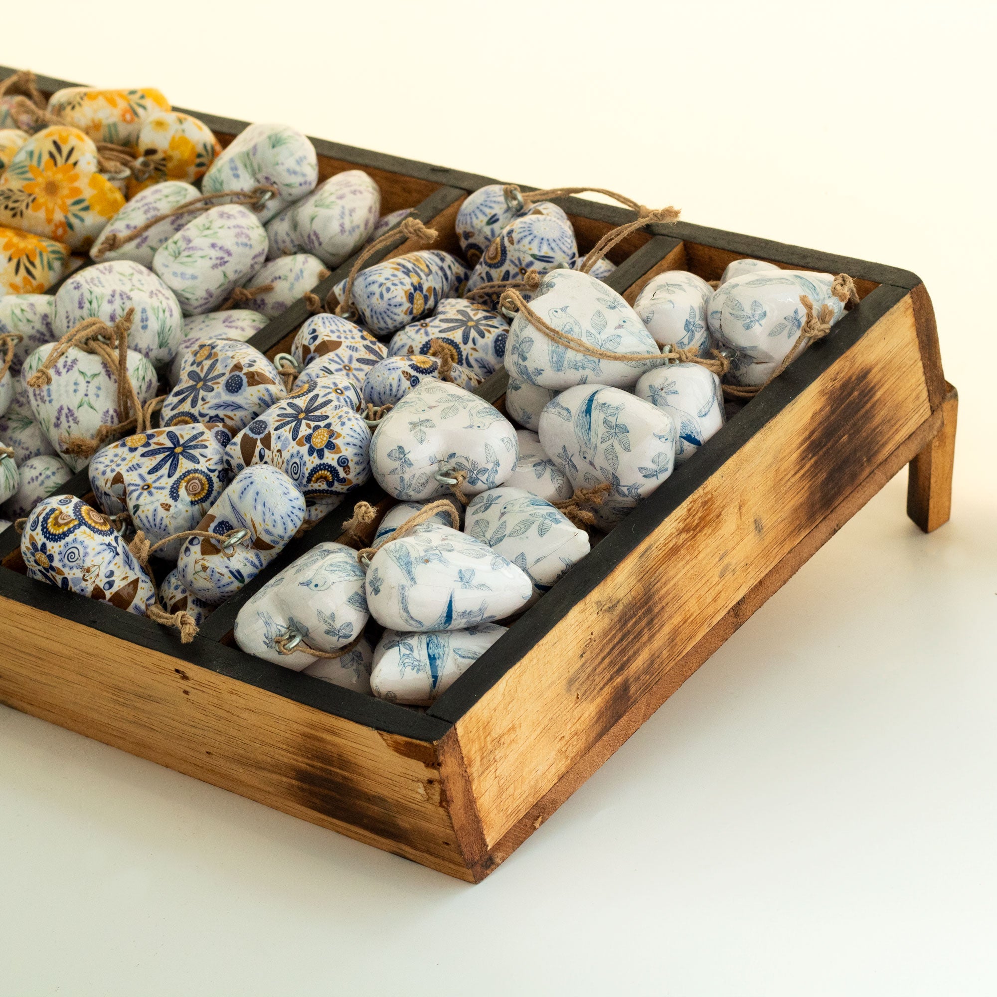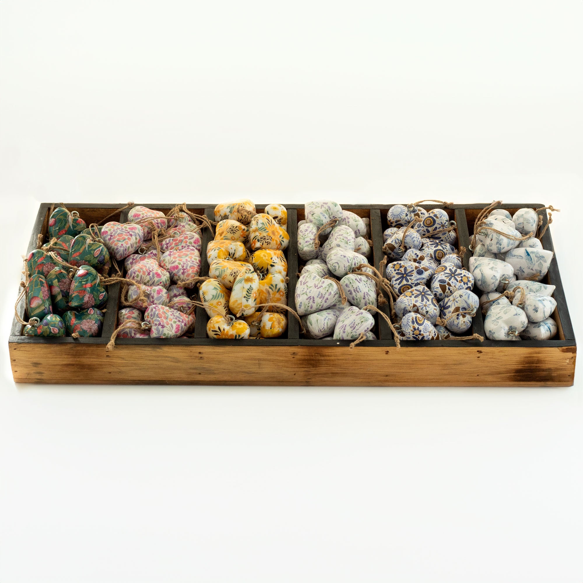A kezdő együttes 144 darab nagy dekorációs fa szívet tartalmaz, és egy ingyenes, 6 rekeszes kijelzőtálcát: