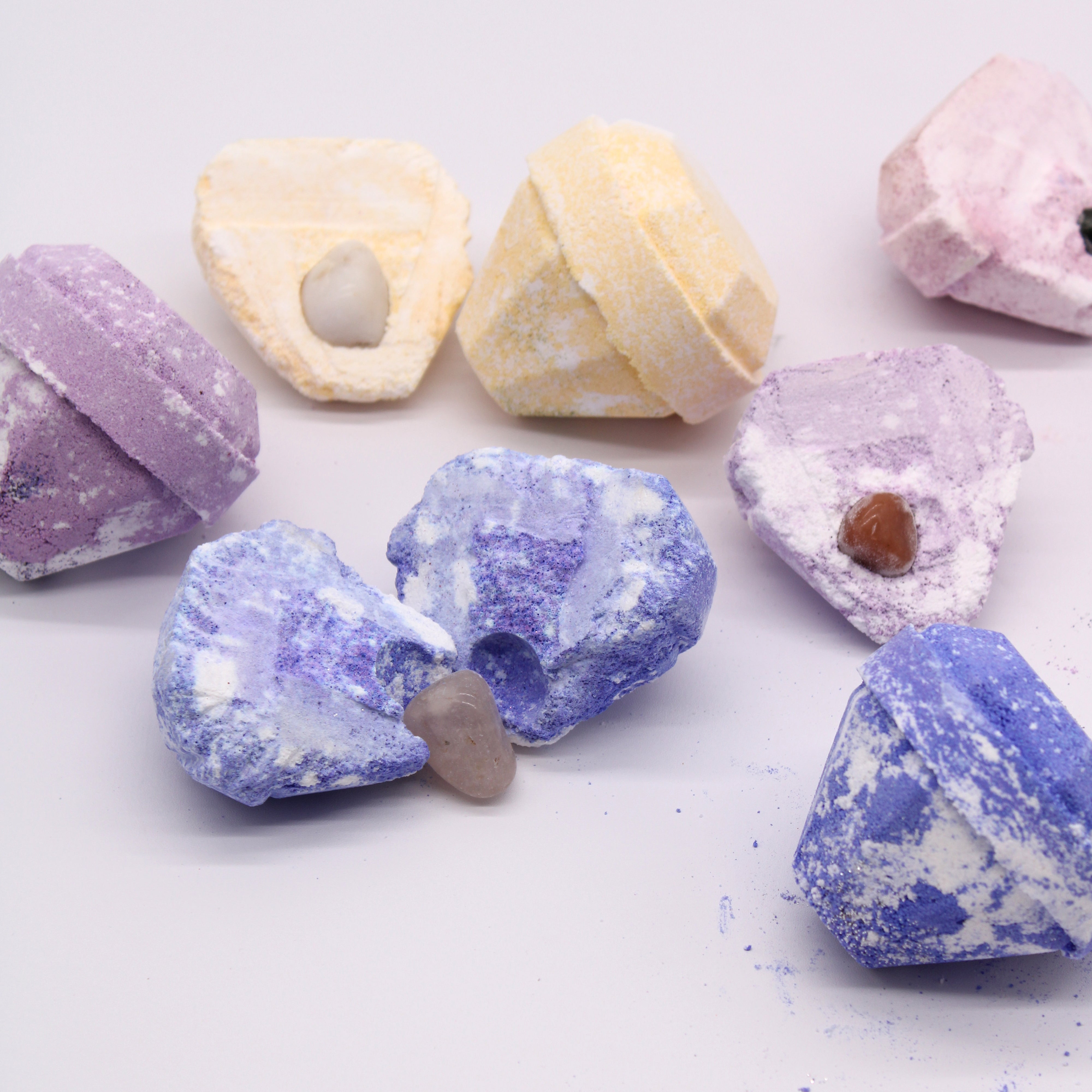 Összesen 128 darab gyémánt alakú fürdőbomba, gyönyörű színekkel és egy cseppnyi ragyogással. A fürdőbombák meglepetést tartogatnak, mindegyikben egy drágakő rejtőzik, A gyémántok csillámokat is tartalmaznak a még ragyogóbb élményért.