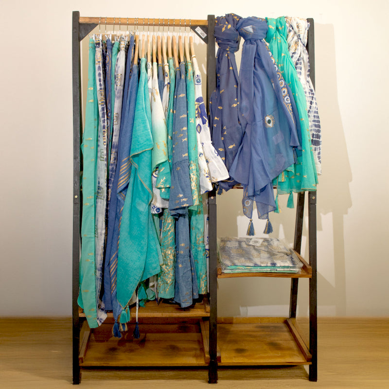 Vigyél egy kis színt és laza eleganciát a divatbemutatódra ezzel a kézzel festett kezdő készlettel,amely kaftánok, strandruhák és nadrágok  keverékét tartalmazza. A készlethez INGYENES pareók és ruhaállvány is tartozik, így könnyedén, azonnal vonzó üzletbeli megjelenést hozhatsz létre.