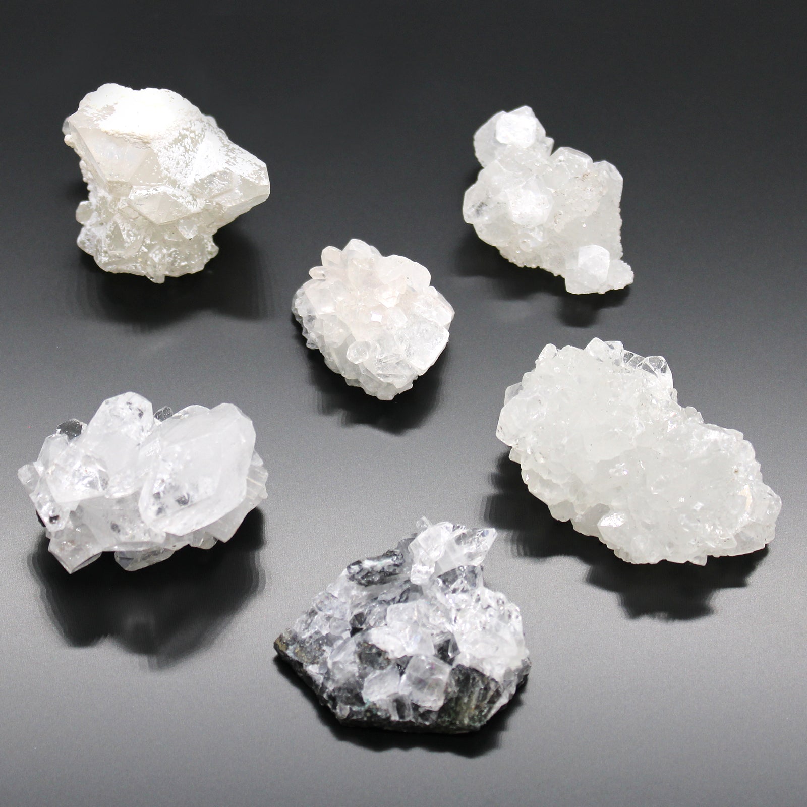 A Fehér Apophilit Klaszterek imertek arról , hogy enyhítik a szorongást és félelmet. Felszívják a negatív gondolatokat, nyugtatják a tudatot.