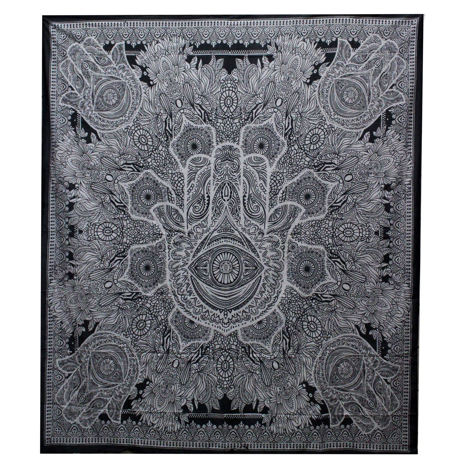 B&W Kettős Pamut Ágytakaró / Falidísz - Hamsa